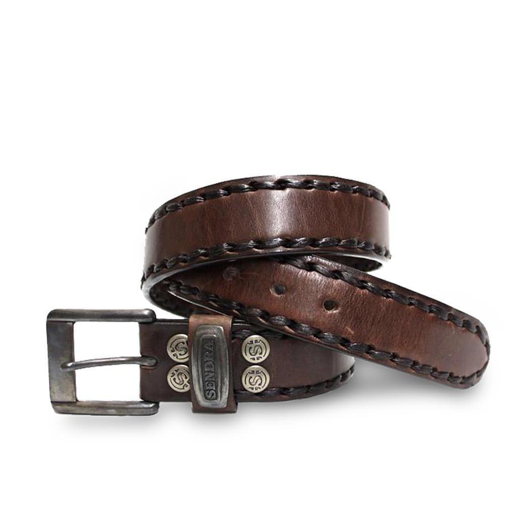 Cinturón de Sendra de piel marrón, de 4 cm de ancho, con hebilla cuadrada que puedes quitar y poner, cosido a mano y la garantía de Sendra